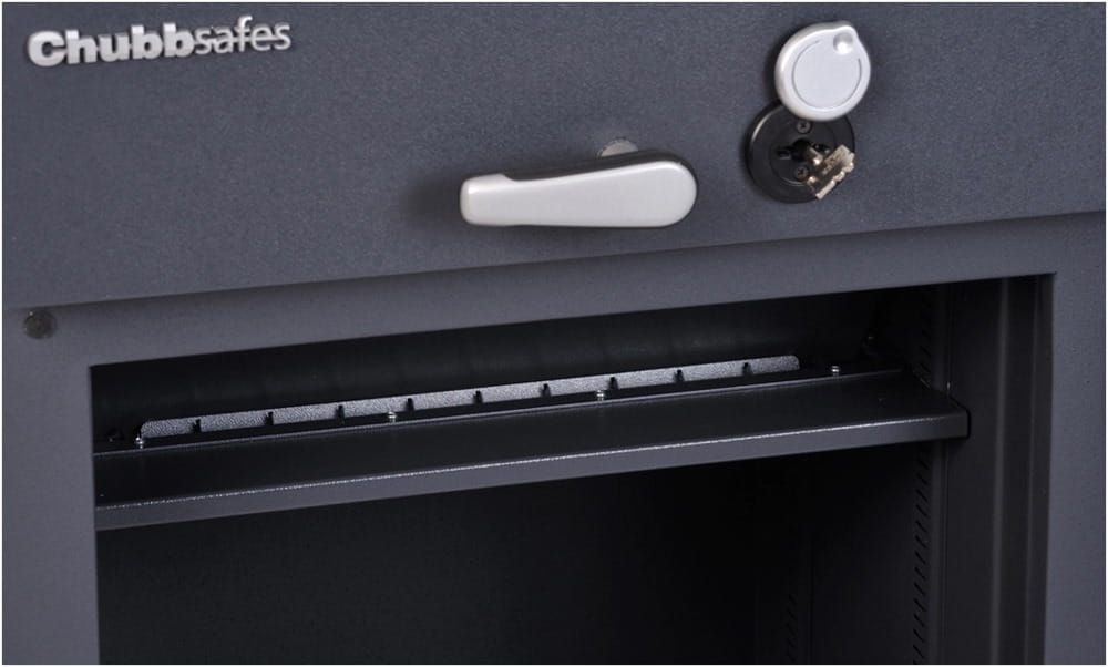 Sejfy do przechowywania depozytów składają się z części głównej i depozytowej, która służy do umieszczania rzeczy wartościowych i dokumentów. Produkty te muszą mieć odpowiednie zabezpieczenia, które wyeliminują możliwość wyciągnięcia zawartości poprzez szafę depozytową. Sejf depozytowy Chubbsafes ProGuard DT to idealne rozwiązanie dla różnego rodzaju biur księgowych, kancelarii prawnych, instytucji finansowych i użytkowników indywidualnych. Dostępny jest w czterech wariantach rozmiarowych: M-45 (687 x 500 x 521 mm), M-90 (847 x 600 x 561 mm), M-125 (1052 x 600 x 561 mm) i M-180 (1307 x 600 x 561 mm). Wszystkie sejfy depozytowe ProGuard DT posiadają zabezpieczenia antywłamaniowe zapewniające ochronę na poziomie zgodnym z Klasą D2 zgodnie z normą EN-1143-2.