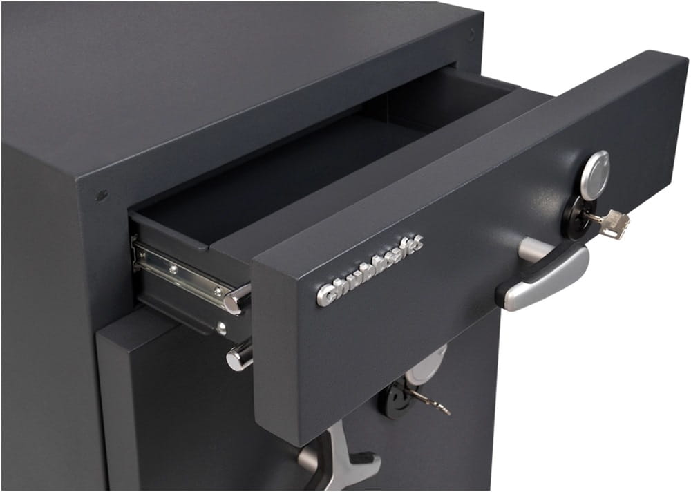 Sejf depozytowy może mieć zastosowany któryś z trzech wariantów zamków. W opcji standardowej użytkownik może zdecydować się na zamek kluczowy Mauer 71111 o poziomie zabezpieczeń antywłamaniowych zgodnym z Klasą A według normy EN 1300 lub elektroniczny, Tecnosicurezza Pulse 10, Klasy B. Za dodatkową opłatą można zdecydować się na montaż dwóch zamków w dowolnej konfiguracji, np. zamek kluczowy do części depozytowej i mechaniczny szyfrowy do sejfu lub dwa zamki elektroniczne góra-dół. Zamki elektroniczne Tecnosicurezza posiadają wiele przydatnych funkcji takich, jak opcja cichego alarmu i opóźnienia czasowego. Sejfy wykończone są wysokiej jakości lakierem proszkowym w kolorze grafitowym (RAL 7016).