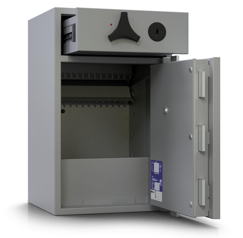 - 2x certyfikowane zamki kluczowe VdS klasy 1 (Wittkopp 2648): jeden w drzwiach głównych i jeden w szufladzie wrzutowej,