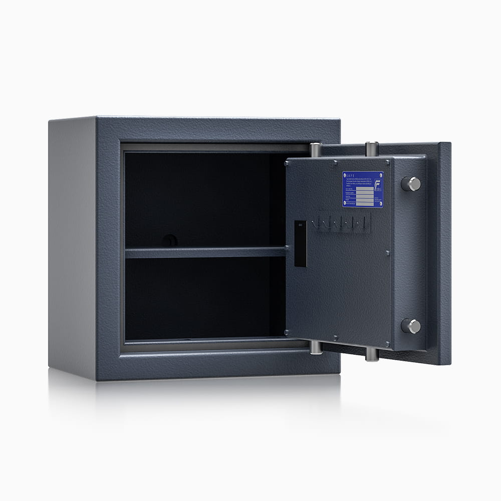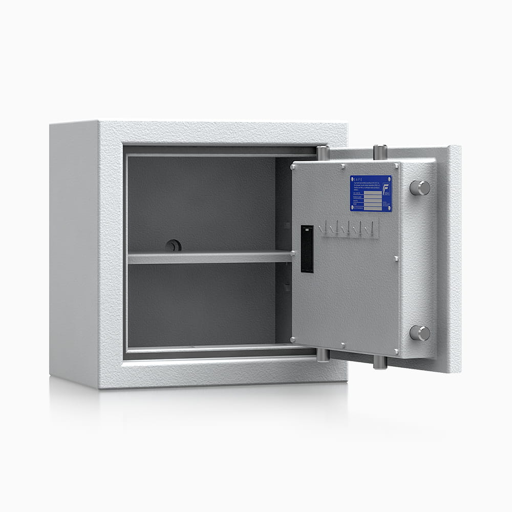 Sejfy Safe4BTM, oferowane przez renomowanego polskiego producenta ISS, to wszechstronne sejfy meblowe zaprojektowane do bezpiecznego przechowywania dokumentów, wartościowych przedmiotów i innych cennych rzeczy. Wyróżniają się unikatową konstrukcją, której rdzeniem są wysuwane szuflady wewnętrzne znacznie zwiększające codzienny komfort użytkowania. Sejfy ISS Safe4BTM charakteryzują się solidną budową i wysokim poziomem zabezpieczeń, co potwierdza certyfikat ECB-S oraz zgodność z normą EN 1143-1 (Klasa I). Ich konstrukcja obejmuje korpusy wielościankowe o grubości 25 mm oraz drzwi wielościankowe o grubości 84 mm, które są osadzone na zawiasach zewnętrznych, umożliwiających otwarcie pod kątem 180°. Drzwi posiadają czterostronne ryglowanie i profil zachodzący od strony zawiasowej. Sejfy ISS Safe4BTM z szufladami idealnie nadają się do biur, aptek i magazynów - wszędzie tam, gdzie zachodzi konieczność przechowywania cennych przedmiotów w ściśle uporządkowany sposób. Mogą być również wykorzystywanych przez firmy do ochrony dokumentacji i mienia wartościowego, jak i być niezawodnymi sejfami domowymi. Dzięki otworom montażowym w dnie i tylnej ścianie można je solidnie przymocować do podłoża lub ściany.