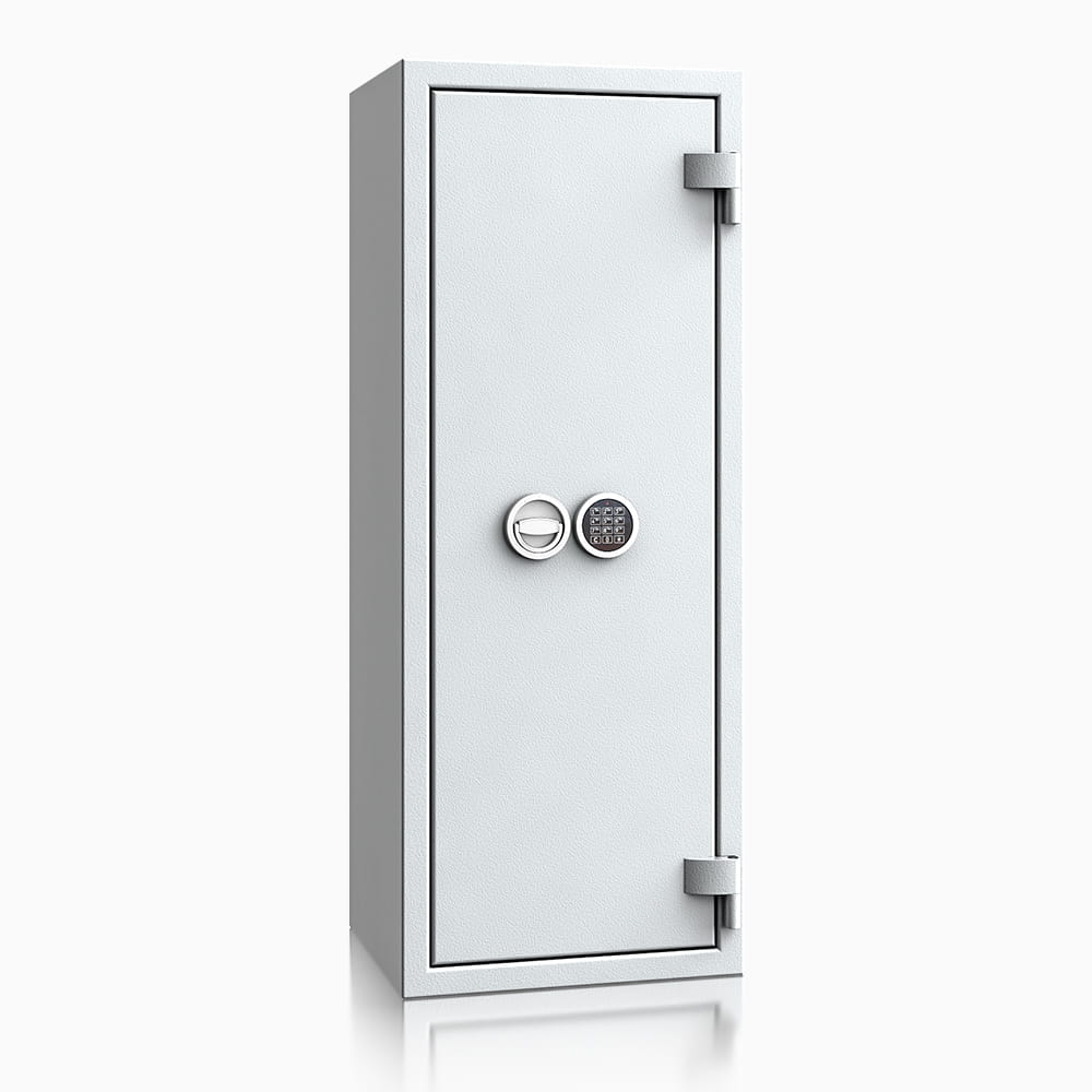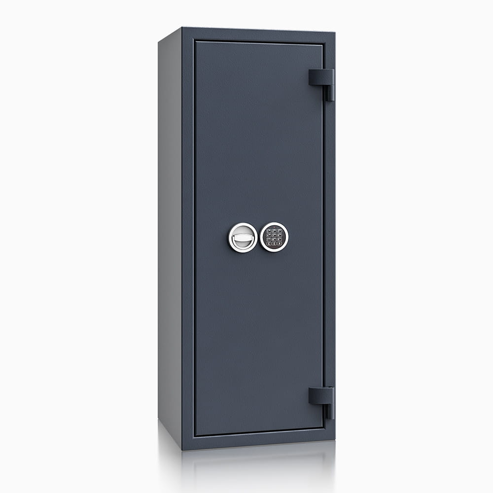 Sejfy Safe4BTM, oferowane przez renomowanego polskiego producenta ISS, to wszechstronne sejfy meblowe zaprojektowane do bezpiecznego przechowywania dokumentów, wartościowych przedmiotów i innych cennych rzeczy. Wyróżniają się unikatową konstrukcją, której rdzeniem są wysuwane szuflady wewnętrzne znacznie zwiększające codzienny komfort użytkowania. Sejfy ISS Safe4BTM charakteryzują się solidną budową i wysokim poziomem zabezpieczeń, co potwierdza certyfikat ECB-S oraz zgodność z normą EN 1143-1 (Klasa I). Ich konstrukcja obejmuje korpusy wielościankowe o grubości 25 mm oraz drzwi wielościankowe o grubości 84 mm, które są osadzone na zawiasach zewnętrznych, umożliwiających otwarcie pod kątem 180°. Drzwi posiadają czterostronne ryglowanie i profil zachodzący od strony zawiasowej. Sejfy ISS Safe4BTM z szufladami idealnie nadają się do biur, aptek i magazynów - wszędzie tam, gdzie zachodzi konieczność przechowywania cennych przedmiotów w ściśle uporządkowany sposób. Mogą być również wykorzystywanych przez firmy do ochrony dokumentacji i mienia wartościowego, jak i być niezawodnymi sejfami domowymi. Dzięki otworom montażowym w dnie i tylnej ścianie można je solidnie przymocować do podłoża lub ściany.