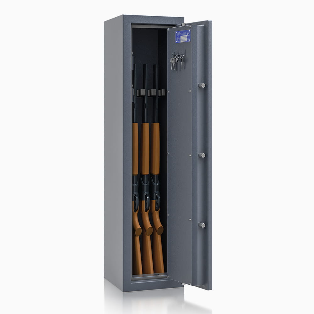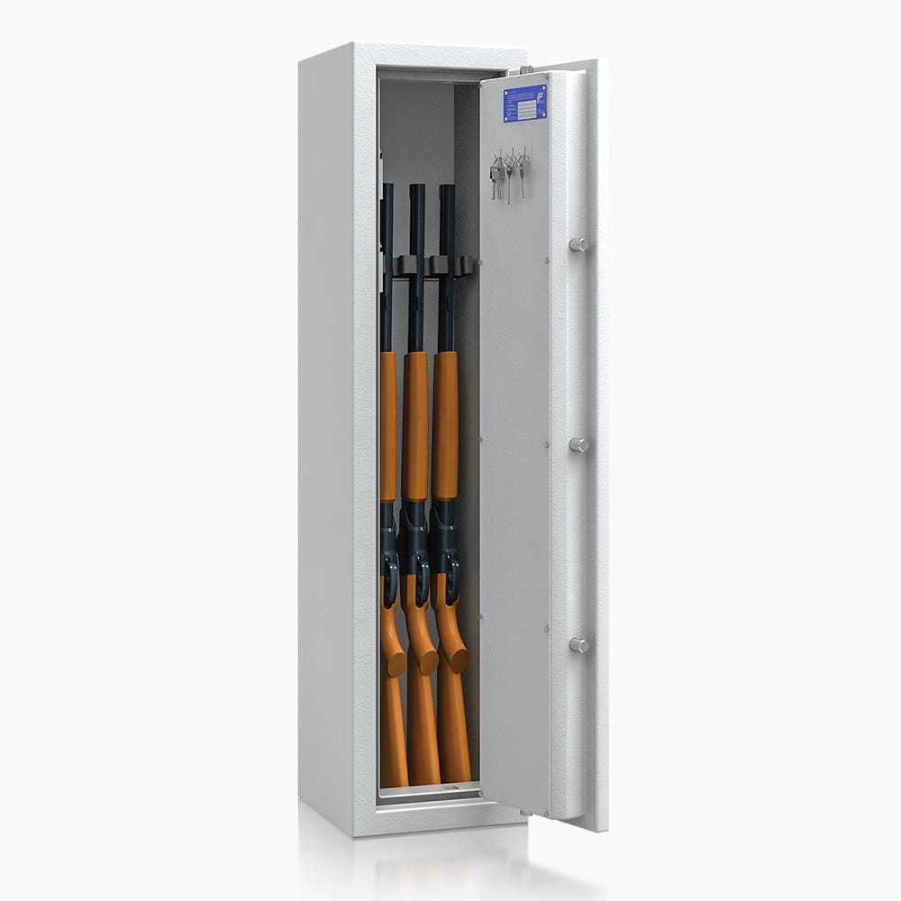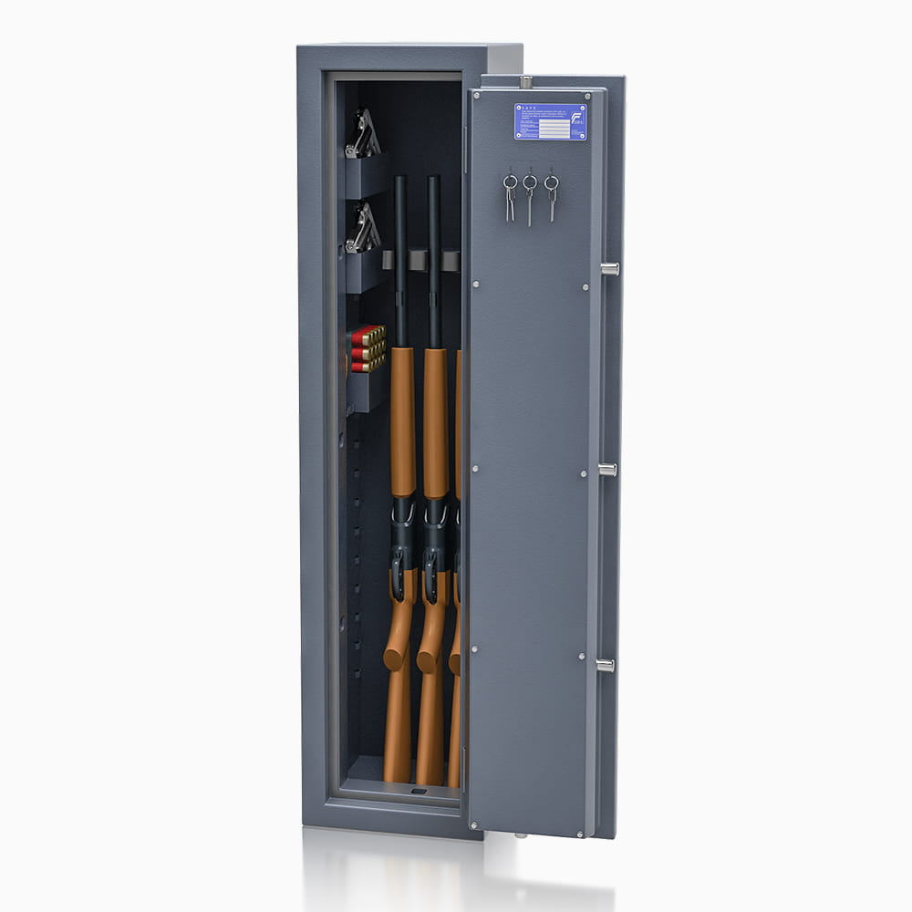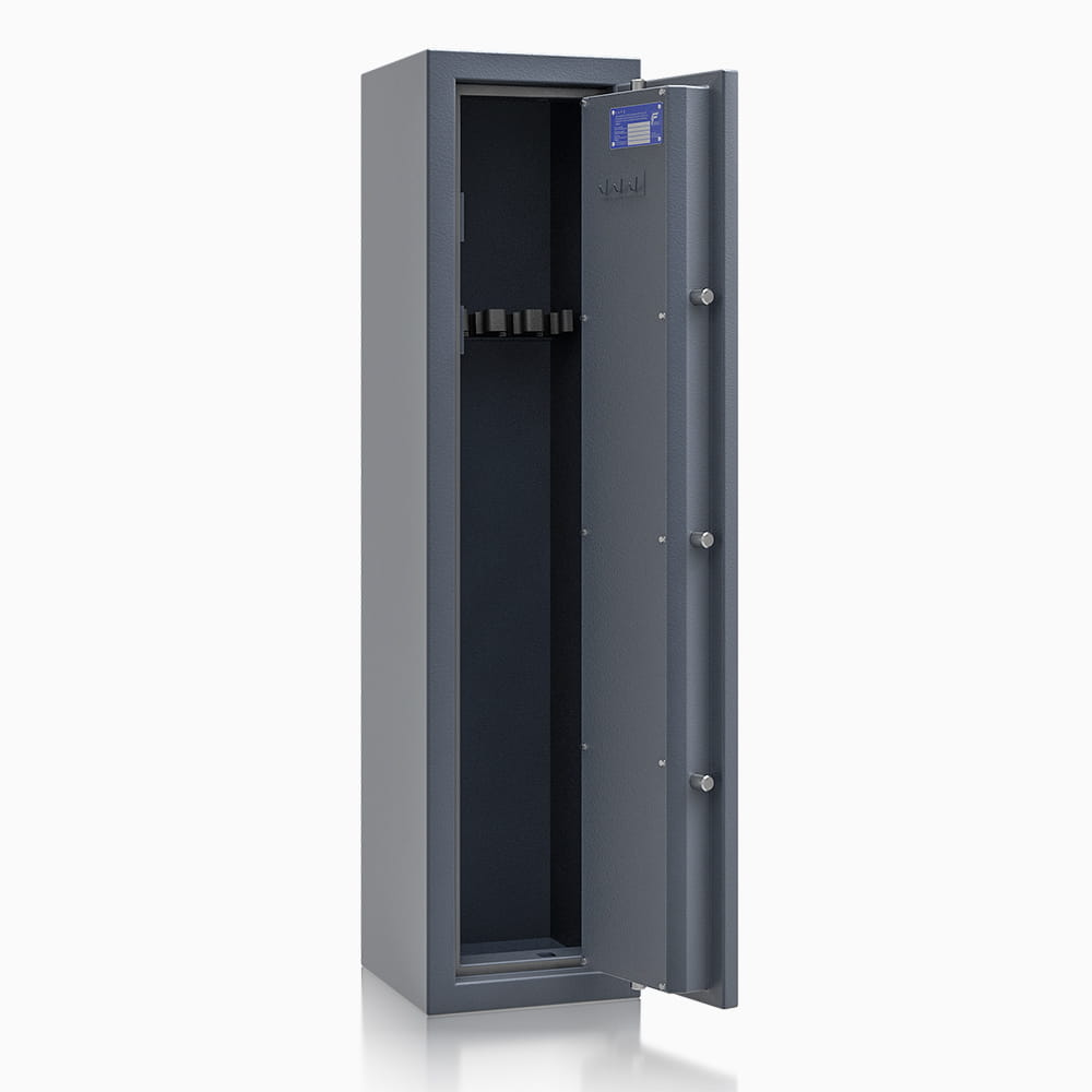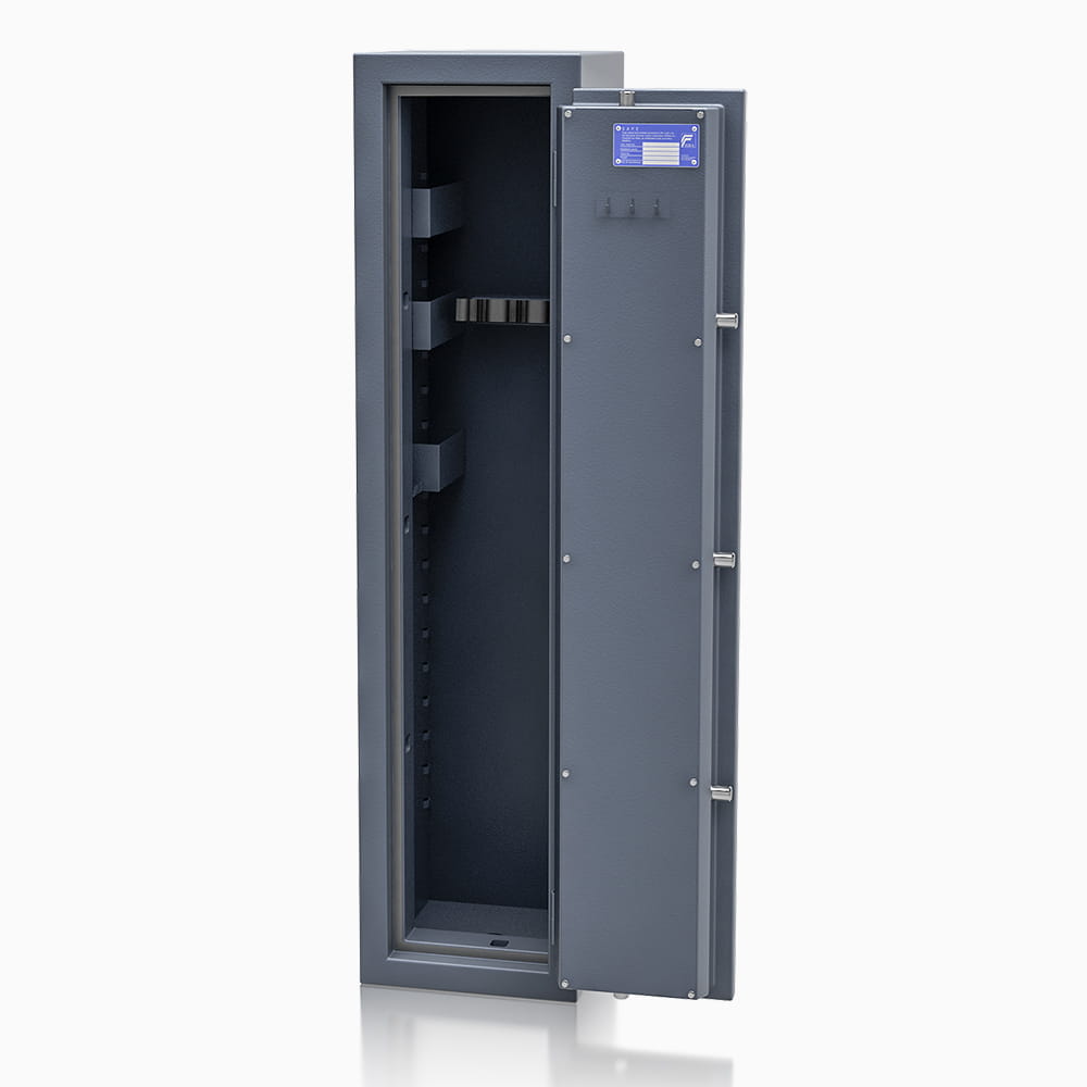 Odporność na włamanie sejfu jest zgodna z Klasą 0 według normy EN 1143-1. Metoda zamykania sejfu to czterostronne ryglowanie. Profil zachodzący przechodzi od strony zawiasowej. Sejf umożliwia wszechstronne rozlokowanie broni za pomocą uniwersalnych uchwytów na broń długą. W górnej części znajduje się półka, która oddziela część przeznaczoną na broń długą od części rekomendowanej do przechowywania amunicji, akcesoriów lub rzeczy wartościowych.