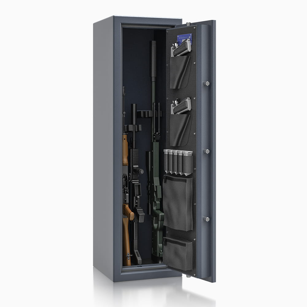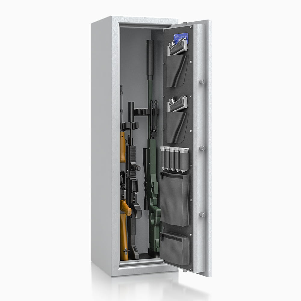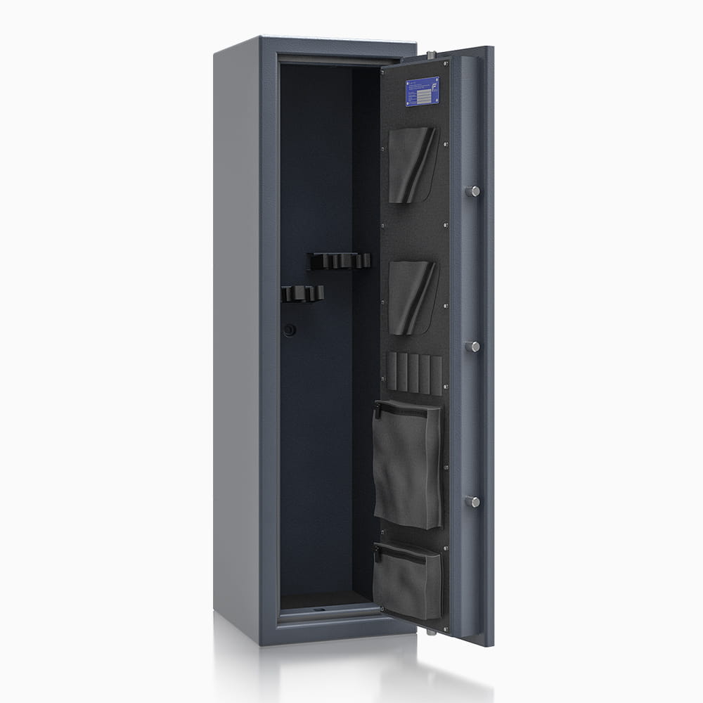 Odporność na włamanie sejfu jest zgodna z Klasą 0 według normy EN 1143-1. Metoda zamykania sejfu to czterostronne ryglowanie. Profil zachodzący przechodzi od strony zawiasowej. Sejf umożliwia wszechstronne rozlokowanie broni za pomocą uniwersalnych uchwytów na broń długą. W górnej części znajduje się półka, która oddziela część przeznaczoną na broń długą od części rekomendowanej do przechowywania amunicji, akcesoriów lub rzeczy wartościowych.
