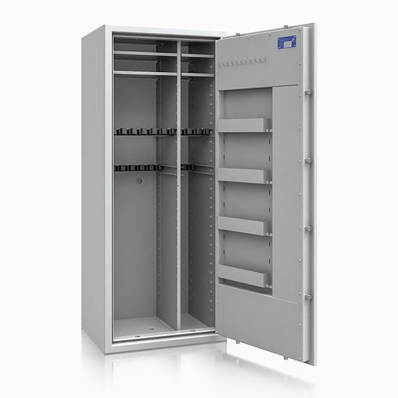 Seria sejfów pancernych na broń długą St. Gallen WF MAX Kombi polecana jest dla jednostek rządowych i służb, a także przedsiębiorców i firm specjalistycznych. Charakteryzuje się przede wszystkim szerokim wachlarzem możliwych do zainstalowania zamków. Wersja standardowa może zawierać certyfikowany zamek kluczowy lub zamek elektroniczny Solar Basic. Asortyment rozszerzony, za dodatkową dopłatą, obejmuje wiele dodatkowych rodzajów zamków elektronicznych i szyfrowych mechanicznych. Można także na różne sposoby konfigurować rozstawienie wewnętrznych półek sejfów sprawiając, że będę się świetnie nadawały do przechowywania różnej liczby broni długiej, broni krótkiej i rzeczy wartościowych.
