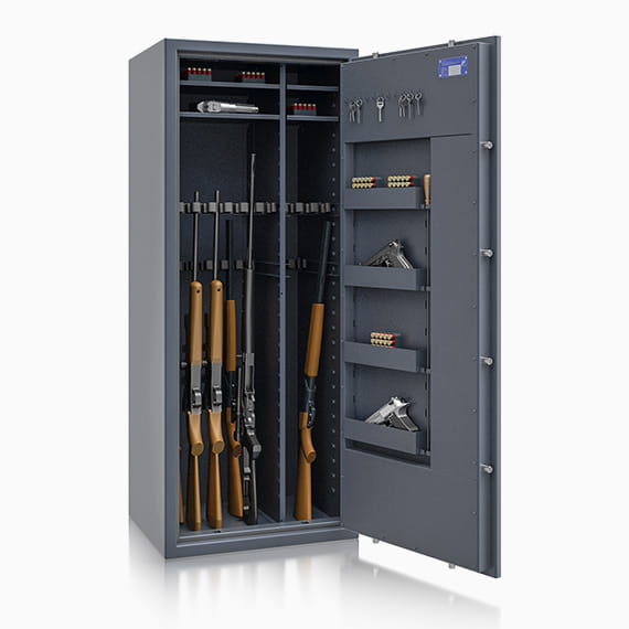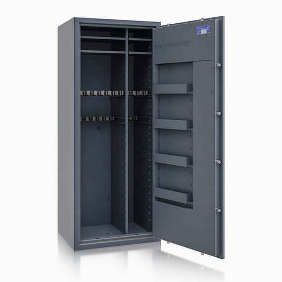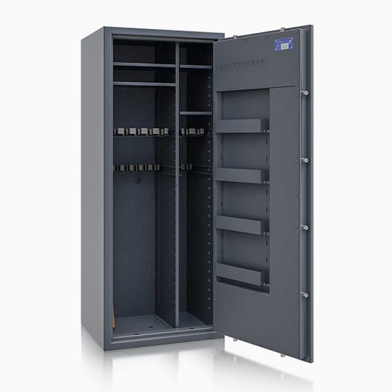 Sejfy na broń długą ISS St. Gallen WF MAX Kombi to rozszerzona wersja serii WF MAX, która charakteryzuje się rozszerzoną liczbą opcji konfiguracyjnych. Sejfy te przeznaczone są do przechowywania broni palnej - długiej i krótkiej, jak i amunicji, rzeczy wartościowych i dokumentów. Spełniają wszystkie wymogi prawne związane z zasadami prawidłowego przechowywania broni. Modele ISS St. Gallen WF MAX Kombi mają odporność antywłamaniową zgodną z Klasa I według normy EN 1143-1.
