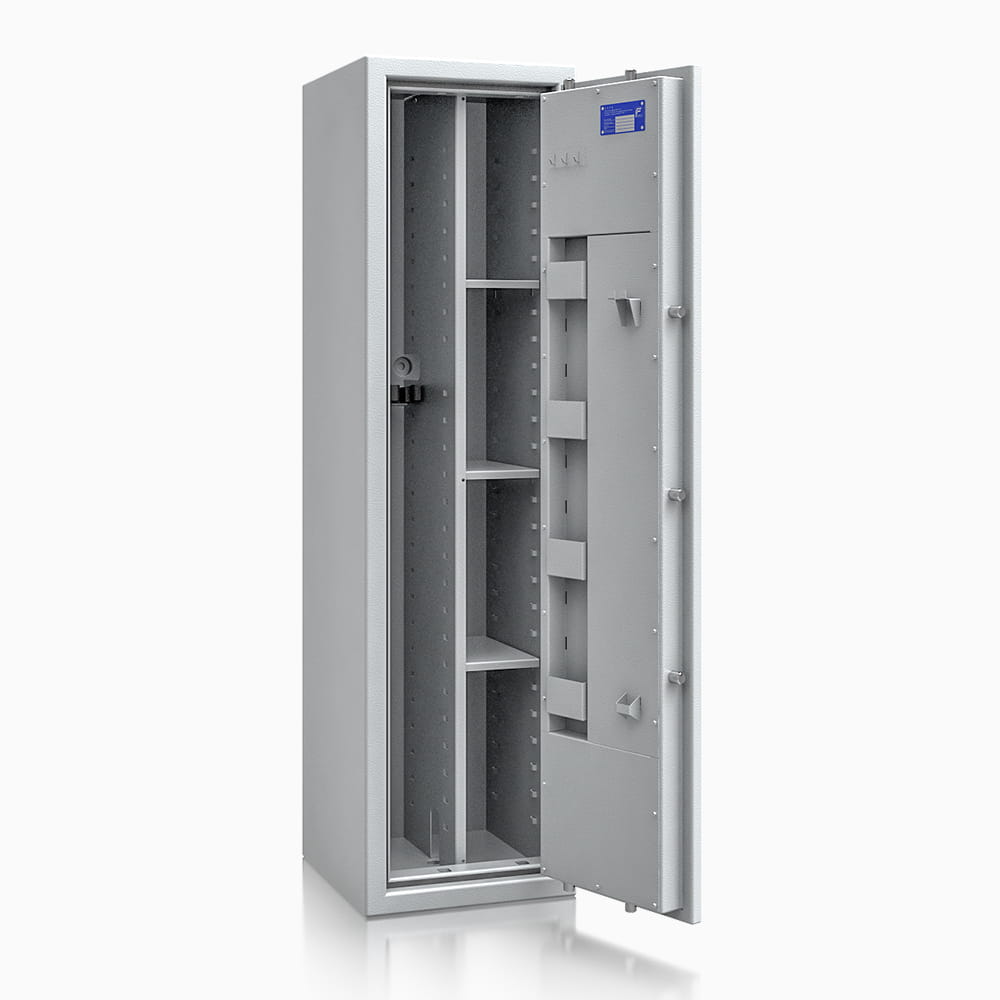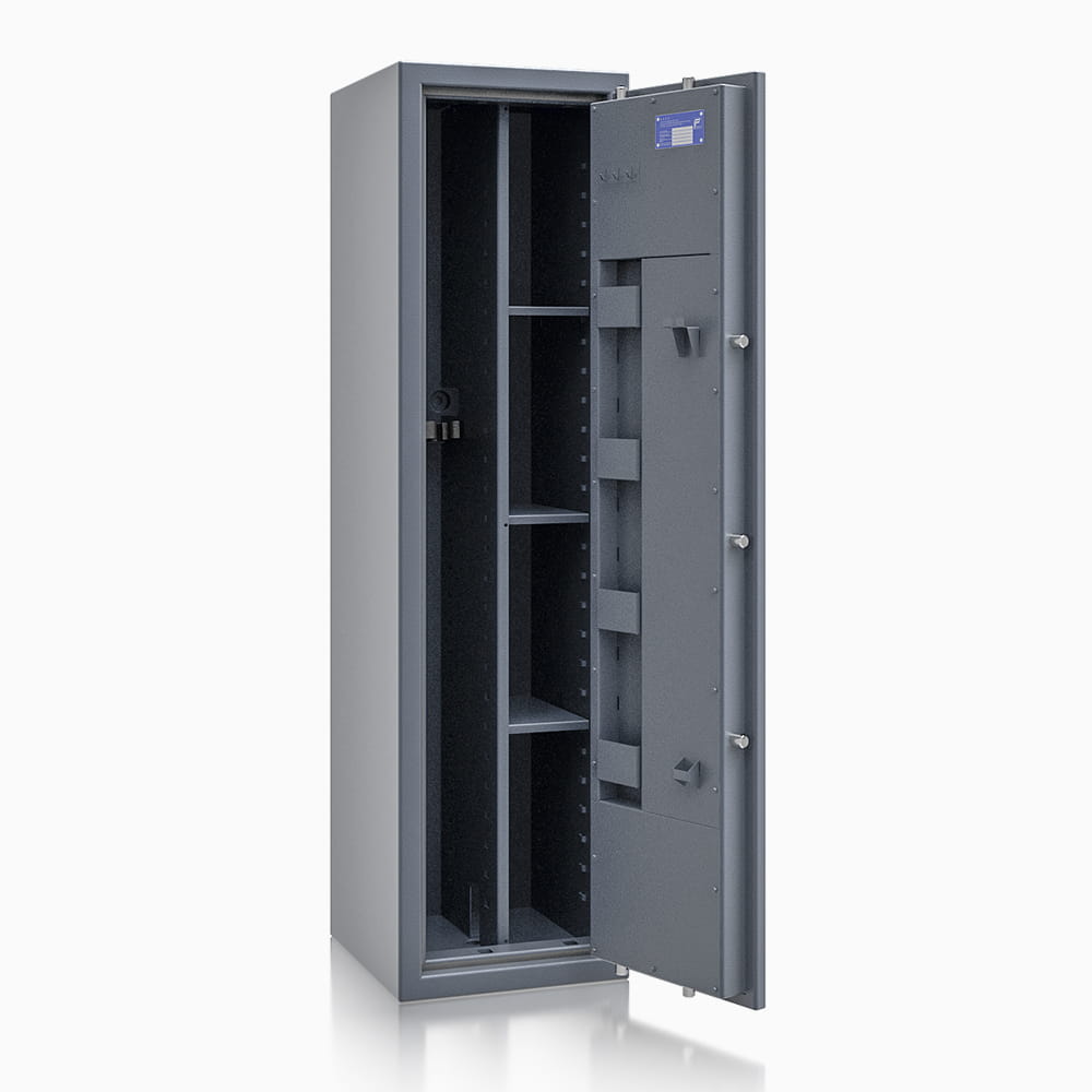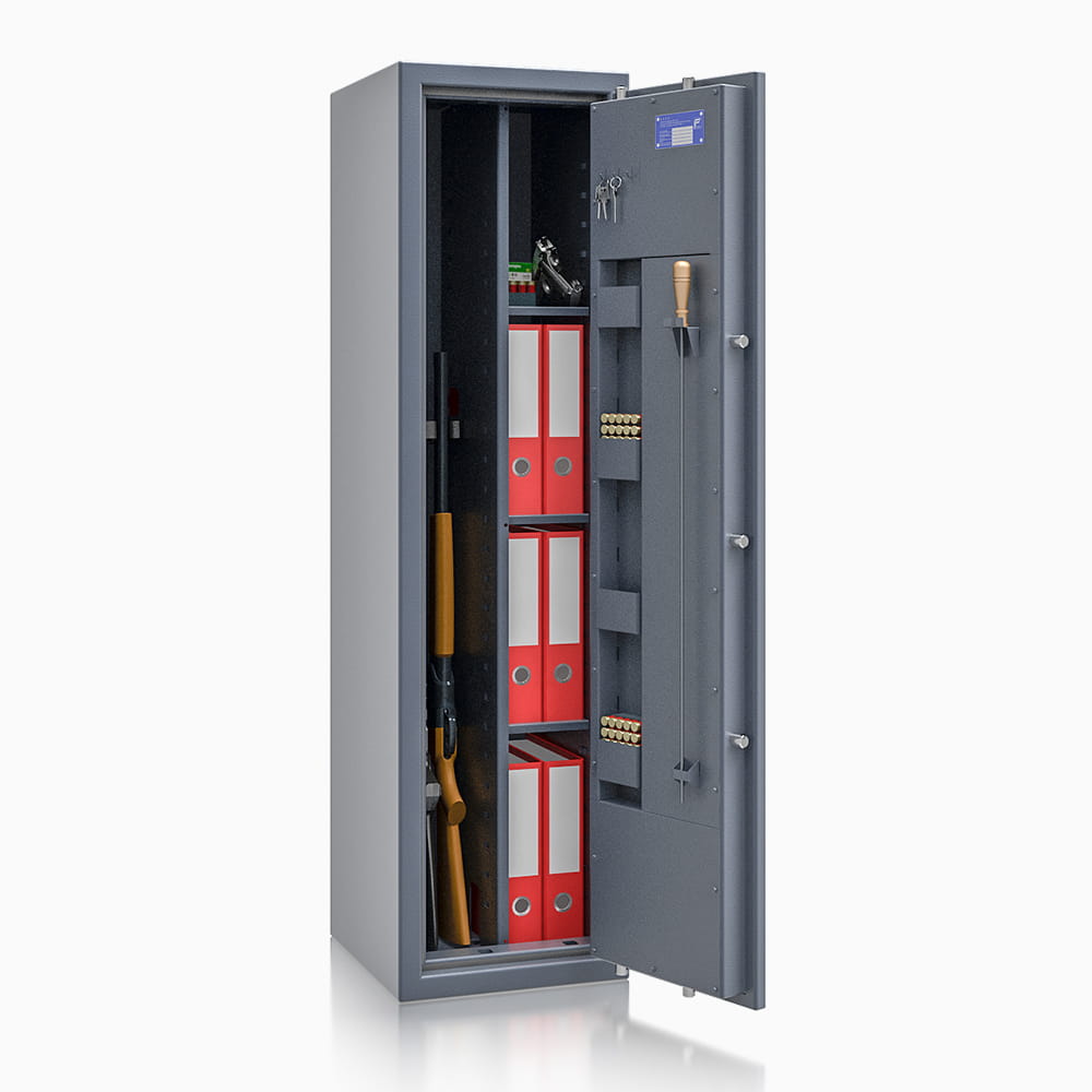 Sejfy na broń długą ISS St. Gallen WF MAX Kombi to rozszerzona wersja serii WF MAX, która charakteryzuje się rozszerzoną liczbą opcji konfiguracyjnych. Sejfy te przeznaczone są do przechowywania broni palnej - długiej i krótkiej, jak i amunicji, rzeczy wartościowych i dokumentów. Spełniają wszystkie wymogi prawne związane z zasadami prawidłowego przechowywania broni. Modele ISS St. Gallen WF MAX Kombi mają odporność antywłamaniową zgodną z Klasa I według normy EN 1143-1.